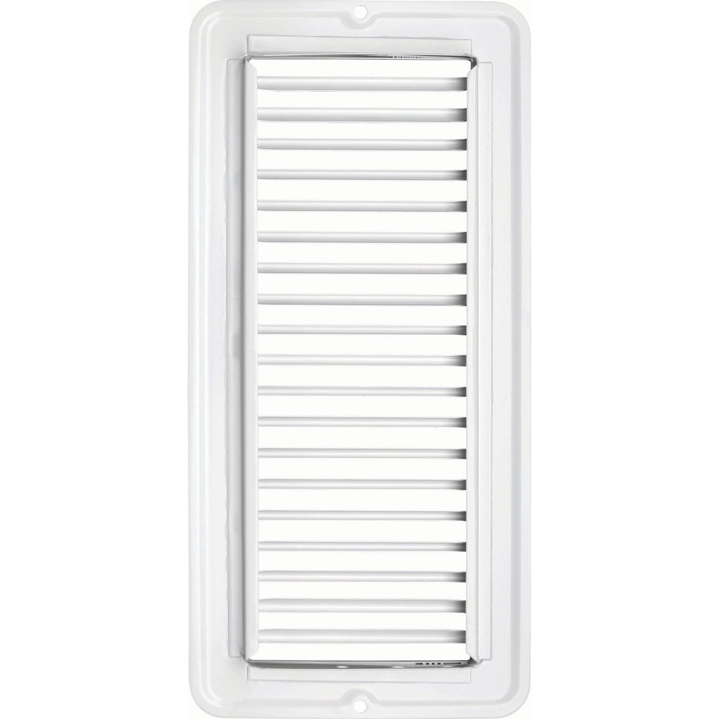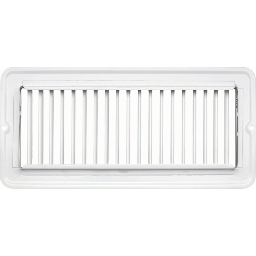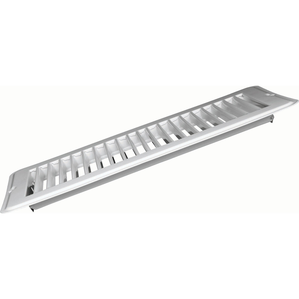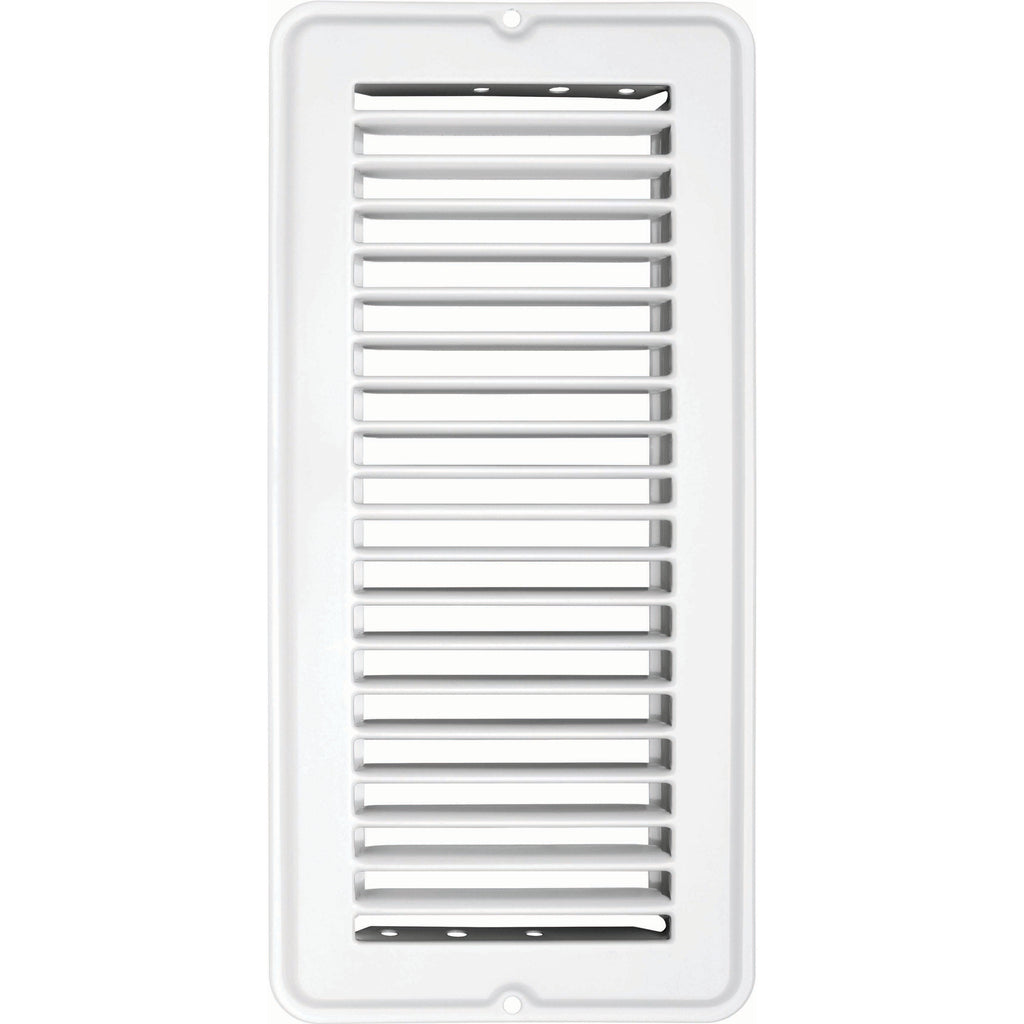 White metal Vent Register. Undampered for Continuous airflow. Cutout dimensions are 4" x 10". Durable and long-lasting. 1 per pack.