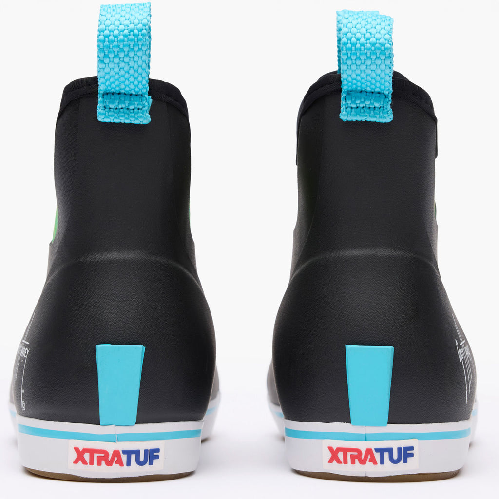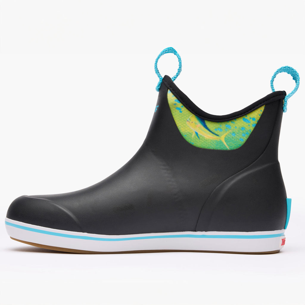 XTRATUF® has been making commercial fishing boots for over 60 years. As fishing has evolved so has fishermen’s needs, so we continue to innovate and solve for how our boots and footwear can help them feel safe, confident, and comfortable. This season the all new Ankle Deck Boot Sport brings you everything you would expect from your XTRATUF® boots but in a sportfishing specific silhouette that is up to 30% lighter than other 6" boots in this category. This ADB Sport is built from a new high-performance foam BIO LITE which is ultra-durable and slip resistant, all while being a one-piece outsole. This boot delivers the comfort and agility of a sneaker with long cushion life and high energy return, all while offering the same traction benefits of a full rubber boot. The Guy Harvey collection has the same great benefits and features signature blue pull tabs and Guy Harvey's signature Wahoo print.