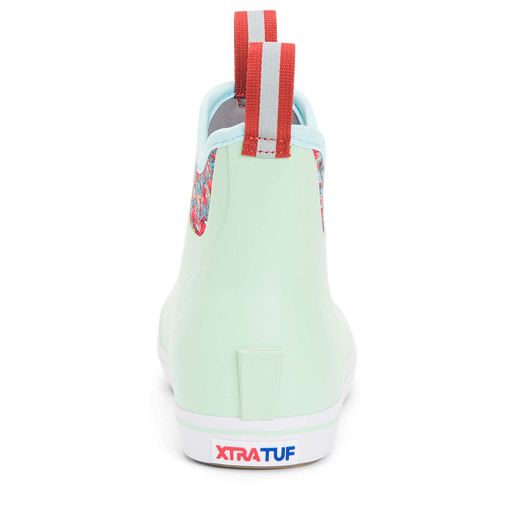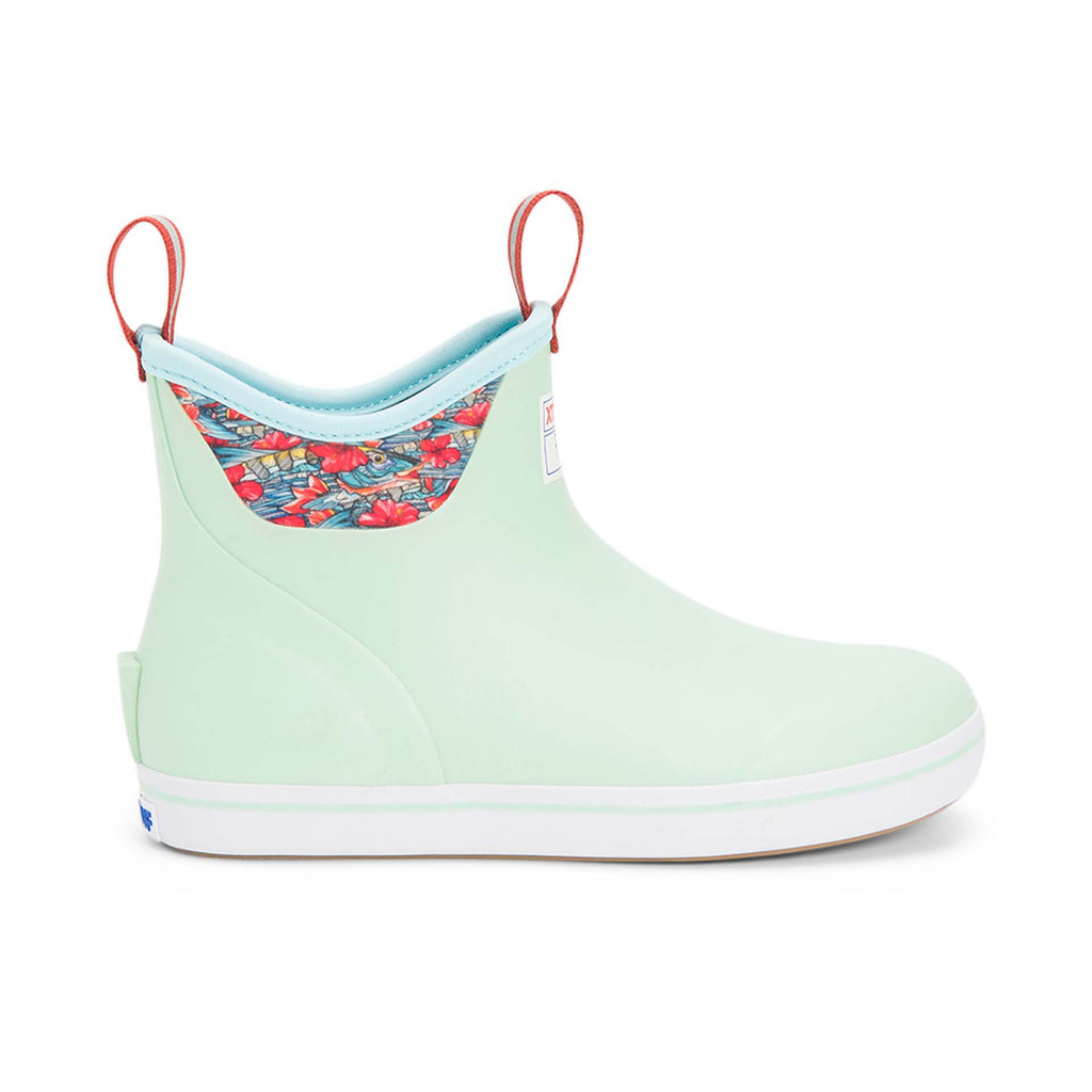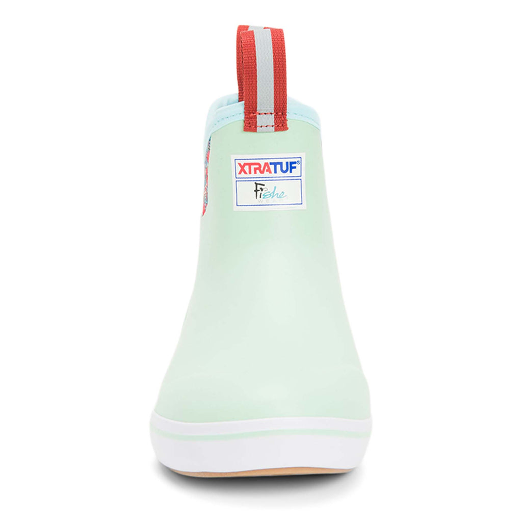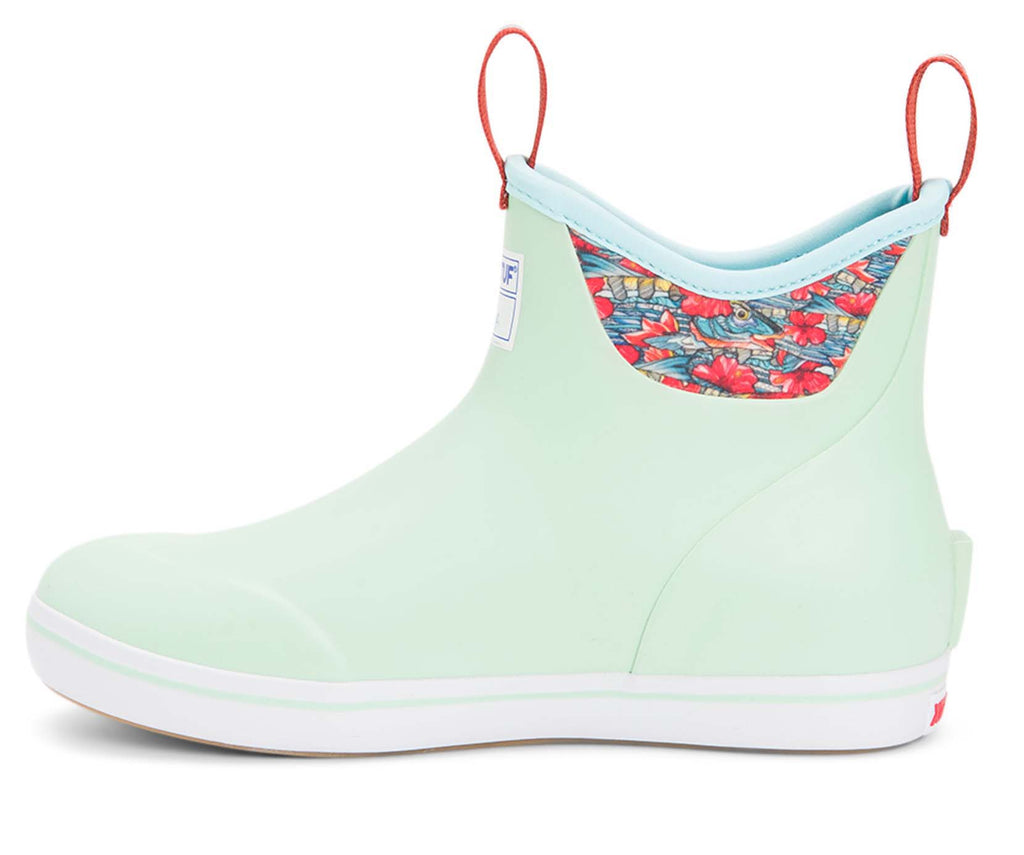 Xtratuf Women's 6 In Fishe Wear Ankle Deck Boot collection has been crafted specifically for sport and recreational fisherwomen. Anglers are athletes, and like any athlete they need the best footwear to help them perform at a high level. This lightweight silhouette has the same XTRATUF non-marking, slip resistant Chevron outsole as our iconic Legacy Boot, worn by commercial fishermen in Alaska. The slip-on-and-go convenience can be worn on or off the boat offering 100% waterproof protection. The interior boasts a highly durable XPRESSCOOL fabric that allows the foot to breathe for long days on the water. The Ankle Deck Boot is constructed with hand-laid rubber therefore it's not a commercial grade boot, and XTRATUF recommends half sizes order up.