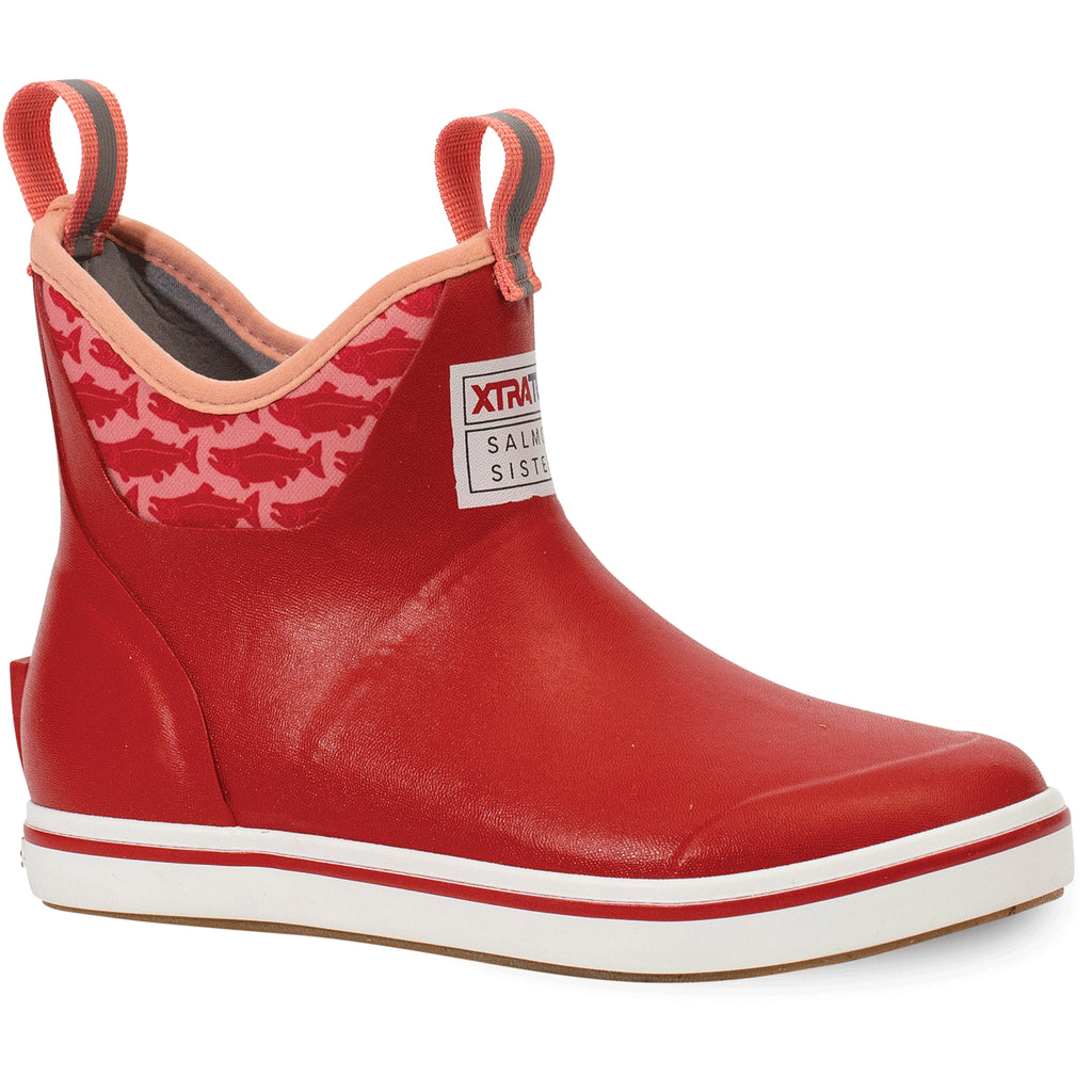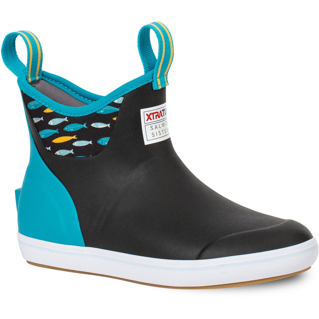 The Xtratuf Women’s Ankle Deck Boot featuring original prints designed by two young Alaskan Fishermen inspired by the wilderness of Alaska and the sustainable fisheries of the North Pacific. The Salmon Sister's print was inspired by the stories of the ocean told for generations by fishermen and other watermen across the globe.